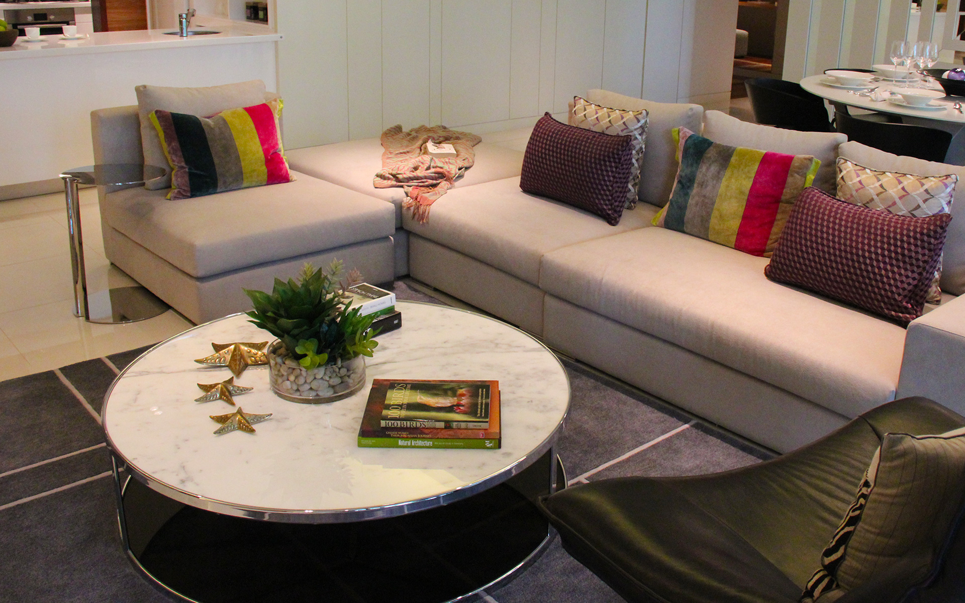 Marble flooring is among the most beautiful flooring options. Set within living rooms, you will live within a space of timeless beauty, naturally created over thousands of years by mother earth. Every marble is unique. Marble is extremely durable and will last longer than most floor tiles. Marble tiles create a distinct décor style as it comes with a number of colour and design options. Marble is easy to clean with a mild soap and water, and is naturally resistant to bacteria and allergens, compared to carpeting.